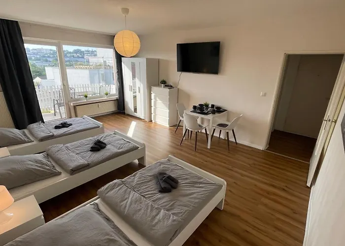 Le domicile de 84 m² est juste à 10 minutes à pied du centre de Lüdenscheid. Le centre commercial Stern est situé à quelques pas de Gna01 - Grosse Wohnung Mit 7 Betten, Grosse Kueche, 2 Balkone & Parkplatz.